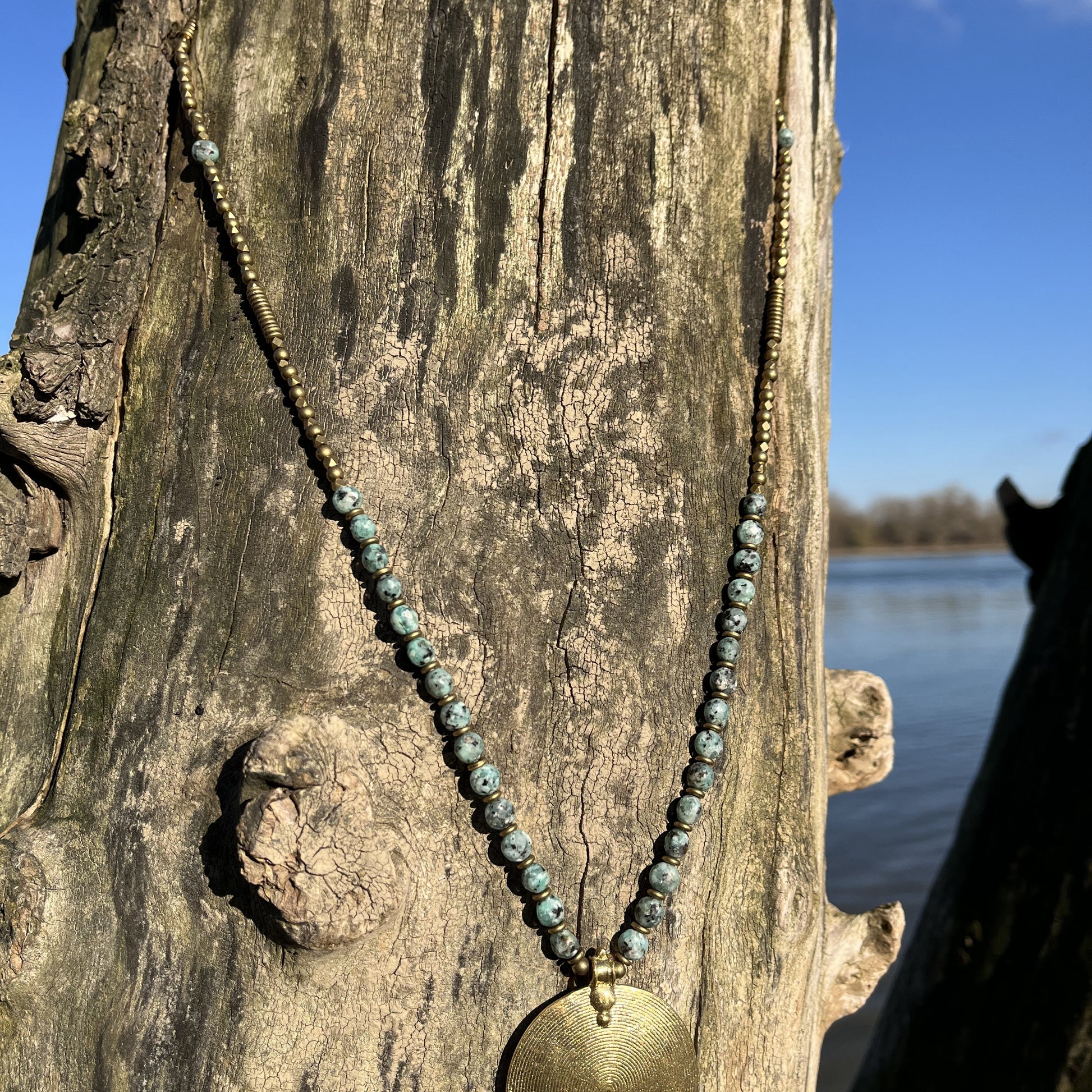 Gemeinsam mit dem goldenen Schimmer des Messings entsteht ein faszinierendes Zusammenspiel aus Natur, Erdverbundenheit und Boho-Eleganz. Jedes Stück wird einzeln gefertigt und besitzt seinen eigenen Charakter – perfekt für Frauen, die authentische, kunstvolle und kraftvolle Schmuckstücke lieben.